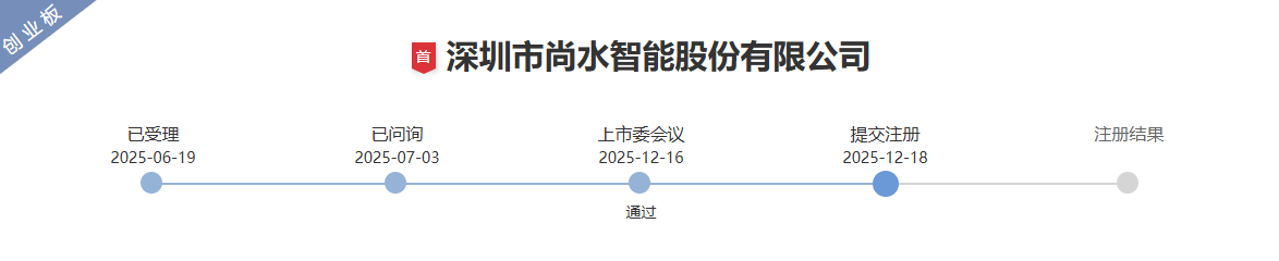 根据深交所创业板官网,尚水智能招股书于2025年6月19日获得受理,当年7月3日进入问询阶段,于2025年12月上会并获得通过。